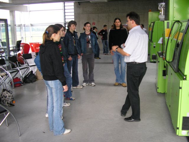 Herr Gratzl erklärt der anderen Gruppe die Schablonen-Maschine